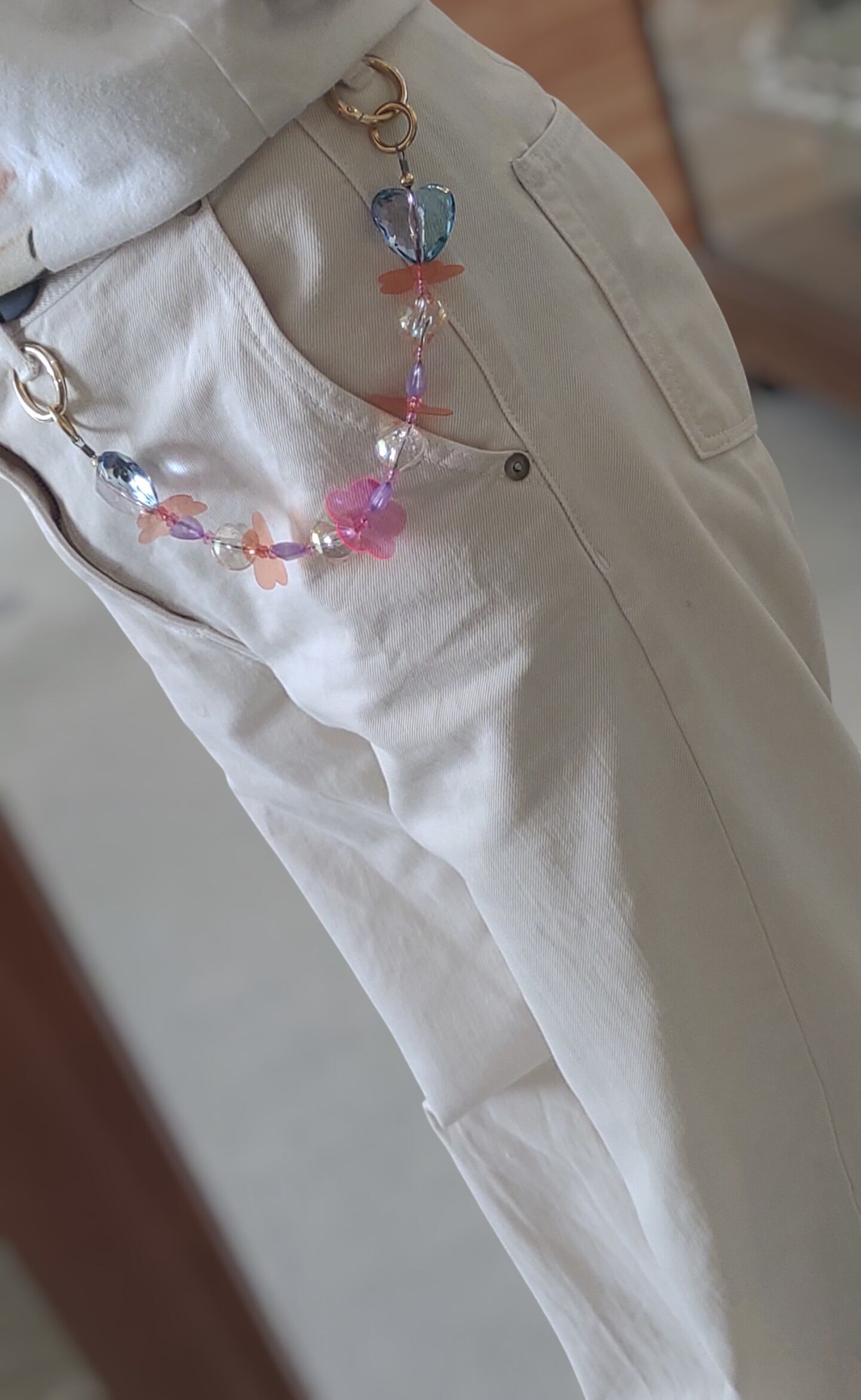 スマホやバッグの先端につけて腕にかけたり