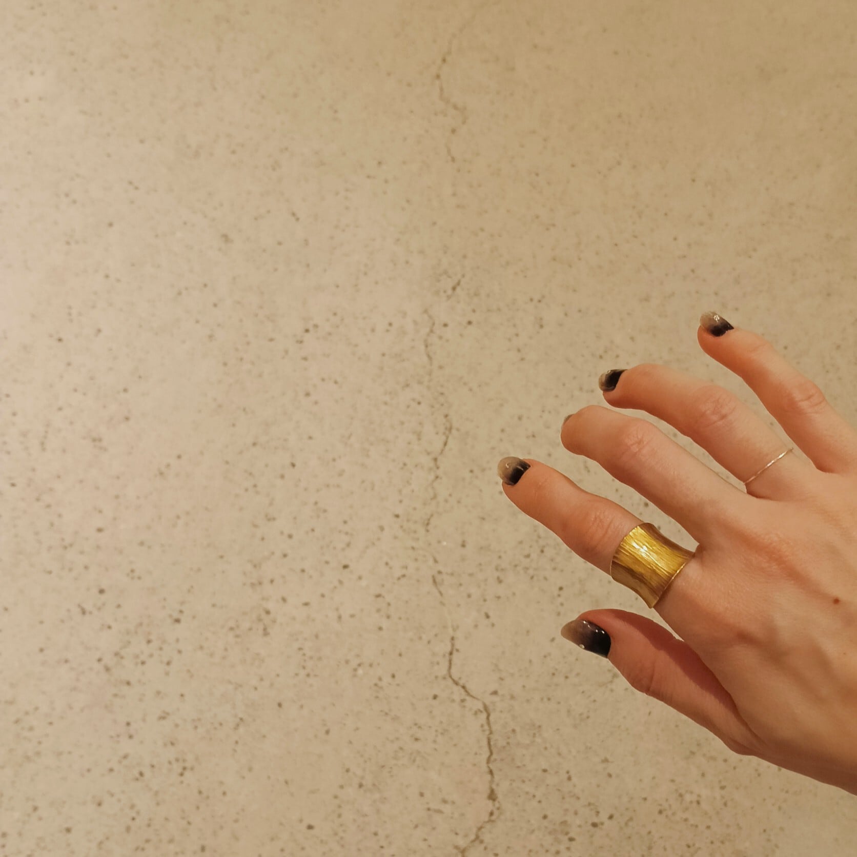 柔らかなカーブを持たせることで、幅広のデザインながら驚くほど指に馴染む仕上がりに。